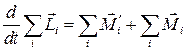 Рассмотрим систему из N материальных точек. Разобьем силы на внутренние и внешние. Результирующий момент внутренних сил, действующих на i-ую материальную точку, обозначим