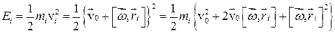 Чтобы получить полную кинетическую энергию тела, просуммируем это выражение по всем элементарным массам, вынося постоянные множители за знак суммы. Получим