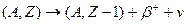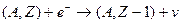 В этом случае ядра испускают позитрон и нейтрино. Процесс часто происходит без испускания позитрона, но с поглощением ядром атомного электрона: