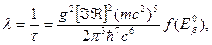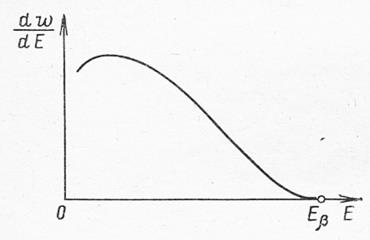 - квадрат модуля матричного элемента нуклонного перехода, вычисляемый методами квантовой механики и описывающий степень сложности перехода из начального состояния нуклона в конечное после его бета-превращения с учетом изменения спина ядра и четности волновой функции; Е – кинетическая энергия бета-частицы с импульсом p. Интеграл от правой части по всем значения импульсов электрона – от нуля до максимального или, что тоже самое, интеграл по всем энергиям электрона от нуля до Еβ дает вероятность распада в единицу времени ω с испусканием электрона с произвольным импульсом, т.е. вероятность любого бета-распада: