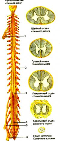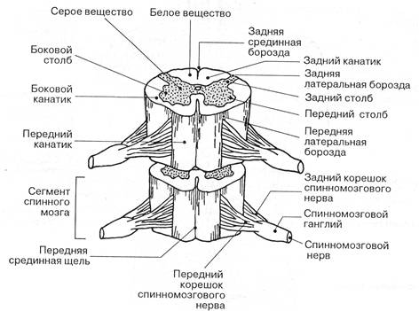 Рис. 1 Строение сегментов спинного мозга