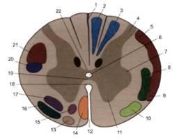 Рис. 5. Проводящие пути на поперечном срезе верхнегрудного отдела спинного мозга.