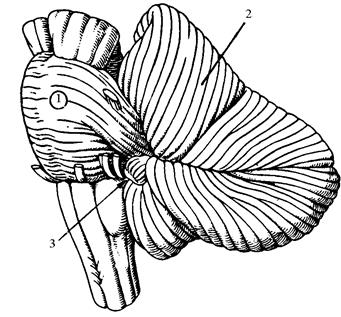 Рис. 3. Строение мозжечка (парасагитальный срез).