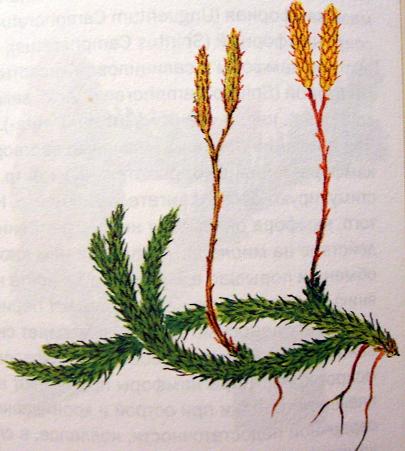 Род плаун(Lycopodium). К этому роду относят многочисленные (около 200 видов) многолетние вечнозеленые травы, распространенные от арктических областей до тропиков. Так плаун булавовидный (L. clavatum) встречается в травяном покрове хвойных лесов на достаточно влажных, но бедных гумусом почвах. В сырых хвойных лесах широко распространен плаун годичный (L. annotinum) (рис. 11. 4).