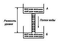 Поток электронов подобен потоку воды, текущему из бака А в бак В, как показано на рис. 1.3. Труба между баками является эквивалентом электрического проводника, а разность уровней воды - эквивалентом разности потенциалов между точками А и В.
