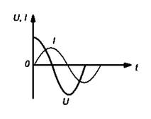 В момент, когда напряжение на катушке достигает максимума, сила тока равна нулю (рис. 5). В момент, когда напряжение становится равным нулю, сила тока максимальна по модулю.