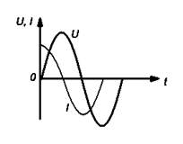 Следовательно, колебания напряжения на обкладках конденсатора в цепи переменного тока отстают по фазе от колебаний силы тока на π/2 или колебания силы тока опережают по фазе колебания напряжения на π/2 (рис. 7). Это означает, что в момент, когда конденсатор начинает заряжаться, сила тока максимальна, а напряжение равно нулю. После того как напряжение достигает максимума, сила тока становится равной нулю и т.д.