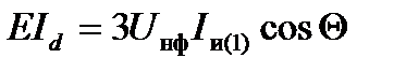 Если принять Ld=∞, то во входной цепи инвертора будет протекать постоянный ток id= Id. Ток Id проводящими тиристорами преобразуется в переменный ток инвертора iи, характеризующий здесь фазные токи iА, iВ, iС. Фазные токи сдвинуты относительно друг друга по фазе на 120° и имеют вид импульсов длительностью в 120° и с паузой в 60°. Действующее значение их первой гармоники определяется соотношением :