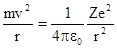 Пусть Ze - заряд ядра атома, вокруг которого вращается один электрон массы m. Радиус орбиты обозначим г, а скорость электрона на орбите - v. Тогда уравнение движения электрона можно записать в следующем виде: