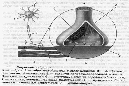 5. Синапс– это клеточные контакты между нейронами или клетками исполнительных органов, через которые передается нервный импульс только в одном направлении.