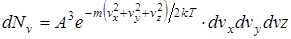 Поскольку движения в направлениях x, y и z равноправны, распределения частиц со скоростями в этих направлениях описываются такими же выражениями. Тот факт, что частица обладает каким-либо значением скорости v, представляет собой случайное событие, состоящее из трех независимых случайных событий — определенных значений компонент скоростей vх, vу, vz. Поэтому число частиц, обладающих заданным значением полной скорости v, определяется произведением вероятностей указанных случайных событий