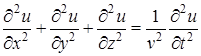 где v— скорость перемещения величины и вдоль оси х. Это уравнение было получено для упругих волн в сплошной струне, но оно не содержит какой-либо специфики упругих волн, а выражает лишь волновой характер изменения физической величины u(x,t) во времени и пространстве. Поэтому, если под величиной v понимать скорость этого изменения, то данное уравнение можно рассматривать как общий вид волнового уравнения для произвольной физической величины u(х, t).