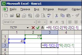 | смешанный | =$A2 * B$1 =A$2 * $B1 | =R[-1]C1 * R1C[-2] =R2C[-3] * R[-2]C2 |