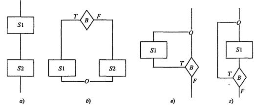 Из данных элементарных блок-схем можно построить четыре блок-схемы, имеющих особое значение для практики алгоритмизации.