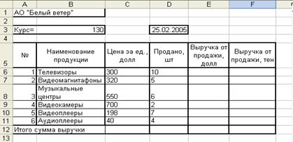 2.Создайте таблицу, внесите в нее исходные данные задачи