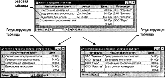 Особенность запросов состоит в том, что они черпают данные из базовых таблиц и создают на их основе временную результирующую таблицу. Когда мы работаем с основными таблицами базы, мы физически имеем дело с жестким диском, то есть с очень медленным устройством (напомним, что это связано с особенностью сохранения данных, описанной выше). Когда же на основании запроса мы получаем результирующую таблицу, то имеем дело с электронной таблицей, не имеющей аналога на жестком диске, – это только образ отобранных полей и записей. Разумеется, работа с «образом» происходит гораздо быстрее и эффективнее – это еще одно основание для того, чтобы широко использовать запросы.