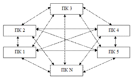 Рис. 11.1. Схема соподчинения ПК в одноранговой сети.