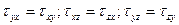 Рассекая рассматриваемое тело плоскостями параллельными прямоуголной системе координат, можно прийти к элементарному кубику на каждую внешнюю грань которого действуют свой вектор напряжений. Проекции этих векторов на оси координат представляют девять компонентов напряжений — два касательных и одно нормальное на каждой грани кубика (рис. 10). Все они представляют одну физическую величину, называемую тензором напряжений.