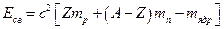 Поэтому для обеспечения стабильности ядра его масса должна быть меньше массы свободных нуклонов на величину: