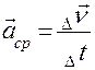 В випадку прямолінійного нерівномірного руху середнє прискорення за проміжок часу Dt дорівнює відношенню зміни швидкості до цього проміжку часу.