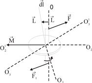 Щоб вісь гіроскопа змінила свій напрям в просторі необхідно, згідно з (11), щоб момент зовнішніх сил, що прикладені до гіроскопа, що обертається відносно його центра мас, відмінний від нуля, то одержуємо явище, що має назву гіроскопічного ефекту. Він полягає в тому, що під дією пара сили F, прикладеної до вісі обертання гіроскопа, вісь гіроскопа (рис.2) обертається навколо прямої