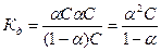 Это соотношение называется законом разбавления Оствальда. Для слабых электролитов, когда ά много меньше 1,