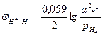 Где рН2 – парциальное давление водорода, аН+ - активность ионов водорода в электролите. Учитывая, что lgаН+=-рН, получим: