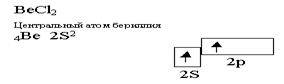 Валентные электроны атома бериллия подвергаются Sp – гибридизации, в результате которой образуется два гибридных q – электрона.