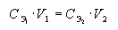 Закон эквивалентов для растворов. Если два раствора взаимодействуют между собой в эквивалентных количествах, то зная концентрацию одного из растворов и прореагировавшие объемы обоих растворов, можно рассчитать неизвестную концентрацию второго раствора по соотношению: