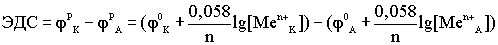 n - число электронов, участвующих в реакции. Переходя от натурального логарифма к десятичному и подставляя в уравнение значение T=298K и соответствующие значения R и F, получаем выражение: