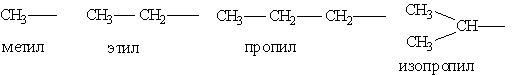 Предельные углеводородные радикалы: