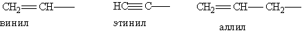 Непредельные углеводородные радикалы: