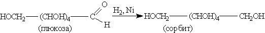 3. Окислительно-восстановительные реакции (ОВР). При каталитическом гидрировании моносахаридов происходит восстановление карбонильной группы до спиртового гидроксила: