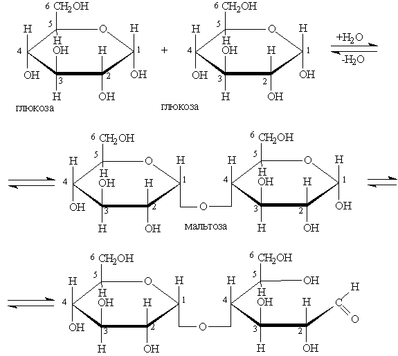 Молекула образующегося при этом дисахарида содержит один полуацетальный гидроксил и способна переходить в ациклическую альдегидную форму. Подобные дисахариды способны восстанавливать такие вещества, как Ag2O, Cu(OH)2, за что их называют восстанавливающими сахарами.