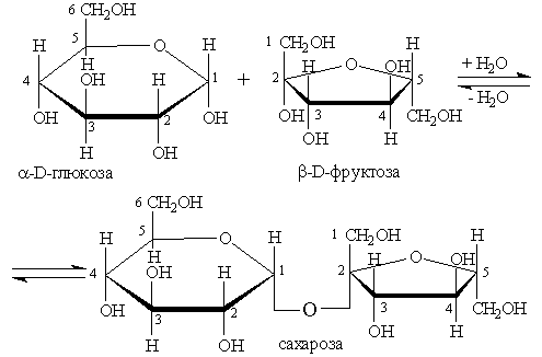 1. Простые эфиры (гликозиды), образующиеся за счет взаимодействия полуацетального гидроксила одной из молекул моносахарида и одного из спиртовых гидроксилов (чаще всего у четвертого атома углерода) другой молекулы: