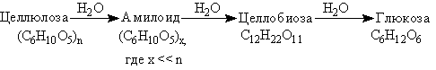 Целлюлоза, подобно крахмалу, в кислой среде гидролизуется: