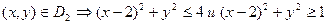 (внутренняя окружность). Так как область D2 находится внутри кольца, включая его границы, то условием принадлежности точки (х,у) области D2 будут неравенства: