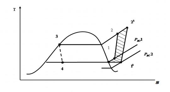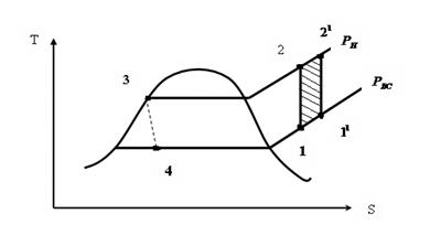 Рисунок 20 – Т-S диаграмма поршневого компрессора при дросселировании на всасывании