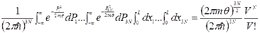 В знаменателе (2) учтено то обстоятельство, что при интегрировании по Xi в координатных интегралах можно интегрировать и по тем точкам, где находятся частицы. Повторы устраняются делением на число перестановок з N частиц, т.е. N!.