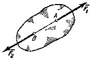 Аксиома III(закон равенства действия и противодействия). Для равновесия свободного твердого тела, находящегося под действием двух сил, необходимо и достаточно, чтобы эти силы были равны по модулю и действовали по одной прямой в противоположные стороны.