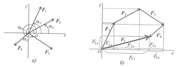 FΣч = Flx + F2x + F3x + F4x; FΣн = Fly + F2y + F3y + F4y;