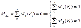 2) Поскольку точка приведения выбрана произвольно, ясно, что при равновесии сумма моментов сил системы относительно любой точки на плоскости должна равняться нулю: