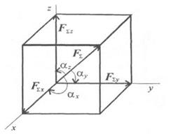 αx, ay, az, — углы между вектором F и осями координат. Рис. 1.32