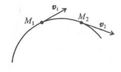 Скорость точки при перемещении из точки М1 в точку М2 меняется по величине и направлению.