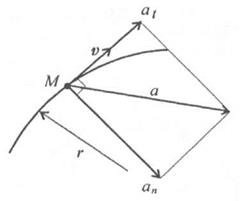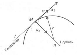Обычно для удобства рассматривают две взаимно перпендикулярно составляющие ускорения: нормальное и касательное (рис. 2.5).