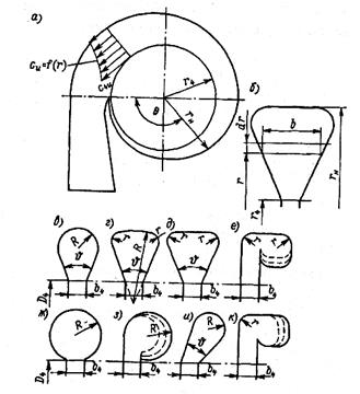 а–поперечный разрез и схема течения; б-к –формы каналов.
