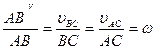 в сторону вращения рассматриваемой плоской фигуры. Действительно, треугольник abc на плане скоростей подобен треугольнику АВС плоской фигуры. Отношение подобие этих фигур равна величине угловой скорости вращения плоской фигуры, т.е.