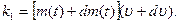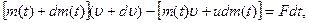 Тогда в момент t+dt образуется одна точка с массой m (t)+ dm (t), имеющая скорость υ +dυ и количество движения