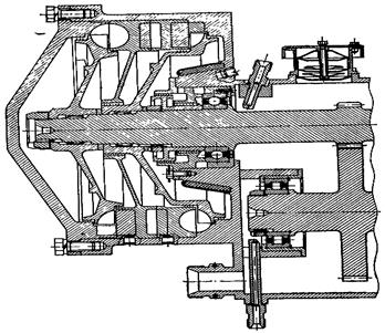 Двухступенчатый вихревой бустер-компрессор, разработанный в НКИ (рисунок 62), имеет выносной привод. Бустер-компрессор предназначен для подачи воздуха в топливные форсунки газотурбинного двигателя при его работе на тяжелом топливе. Ограничительные конструктивные особенности бустер-компрессора связаны с условиями его работы: на всасывание подается воздух, отбираемый от компрессора высокого давления газотурбинного двигателя, в связи с этим в процессе работы компрессора давление на входе изменяется почти на порядок, а абсолютная температура - почти в два раза.