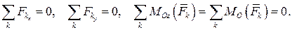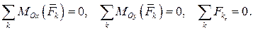 Проектируя эти уравнения на оси декартовой системы координат, получим шесть независимых уравнений равновесия